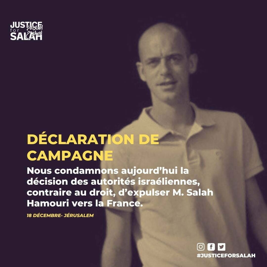 Nous condamnons aujourd’hui la décision des autorités israéliennes, contraire au droit, d’expulser M. Salah Hamouri vers la France.